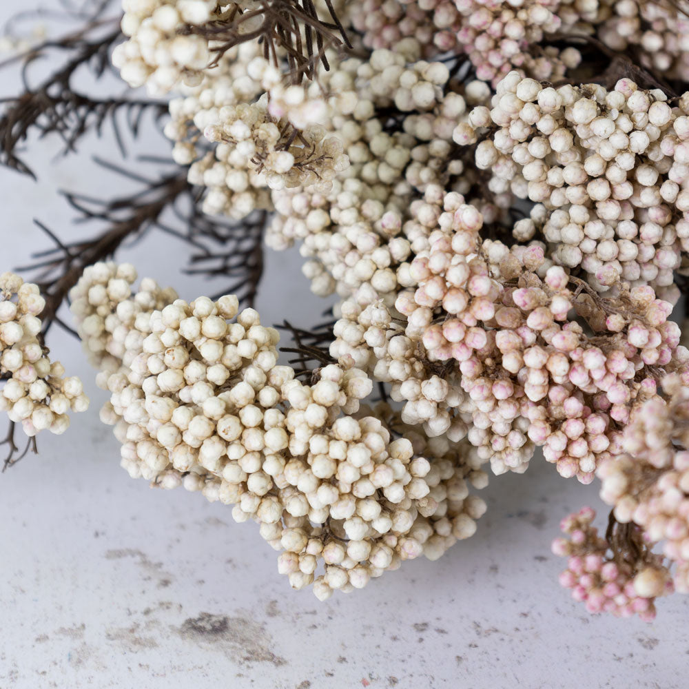 These beautiful stems are filled with tiny, spherical flowers. Rice flower is great for a bit of colour and texture, either as a stand-alone display or as a filler to an arrangement. It has been preserved using a 100% plant-based and biodegradable solution that leave it looking as fresh as the day it was picked.
