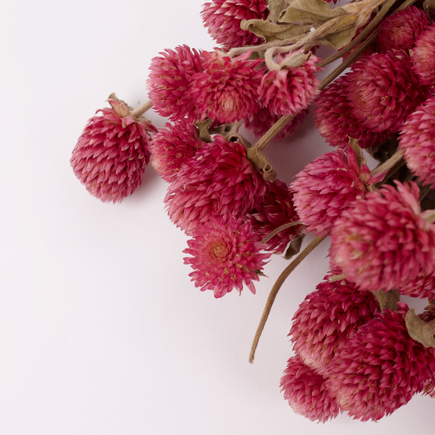 This is our Super Grade Dried Gomphrena. New season available in 3 natural colours. These larger bunches are 130g.