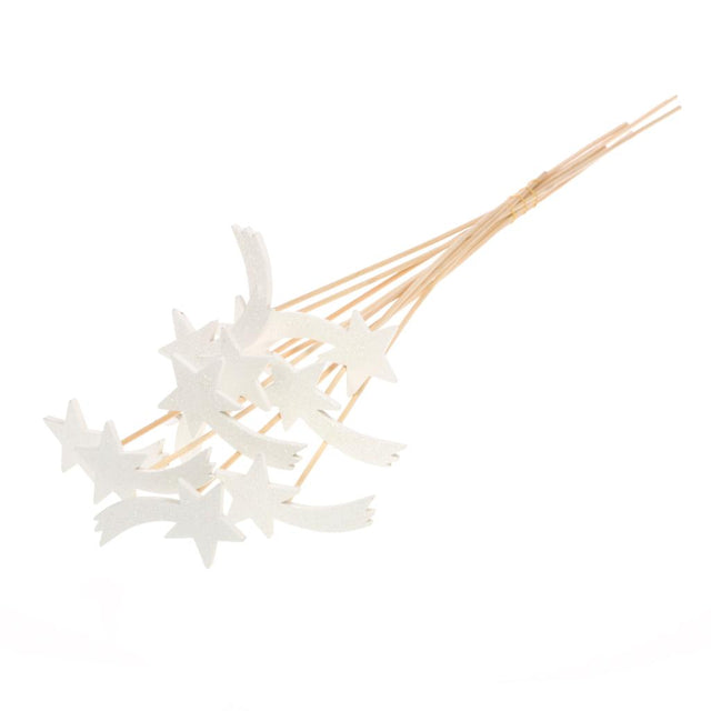Pre Order Wood rising star 9cm on stem white R/G glitte, Box x 35 is backordered and will ship as soon as it is back in stock.