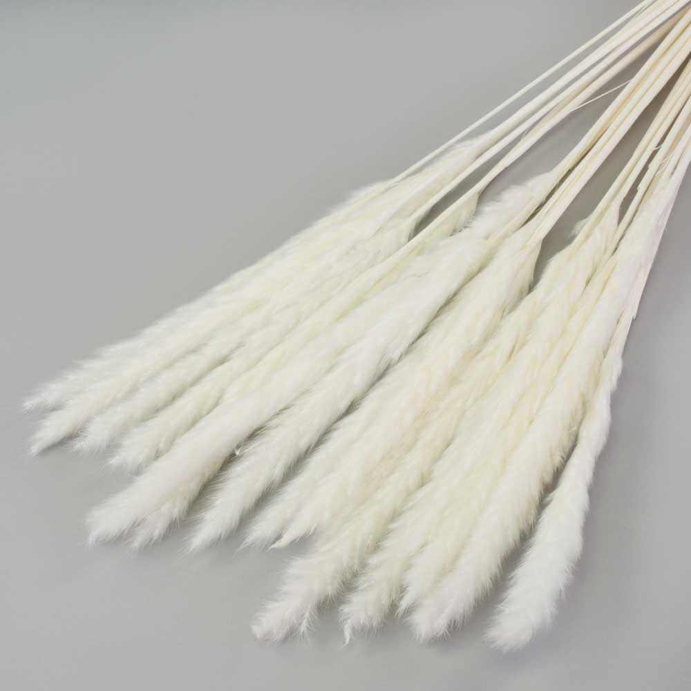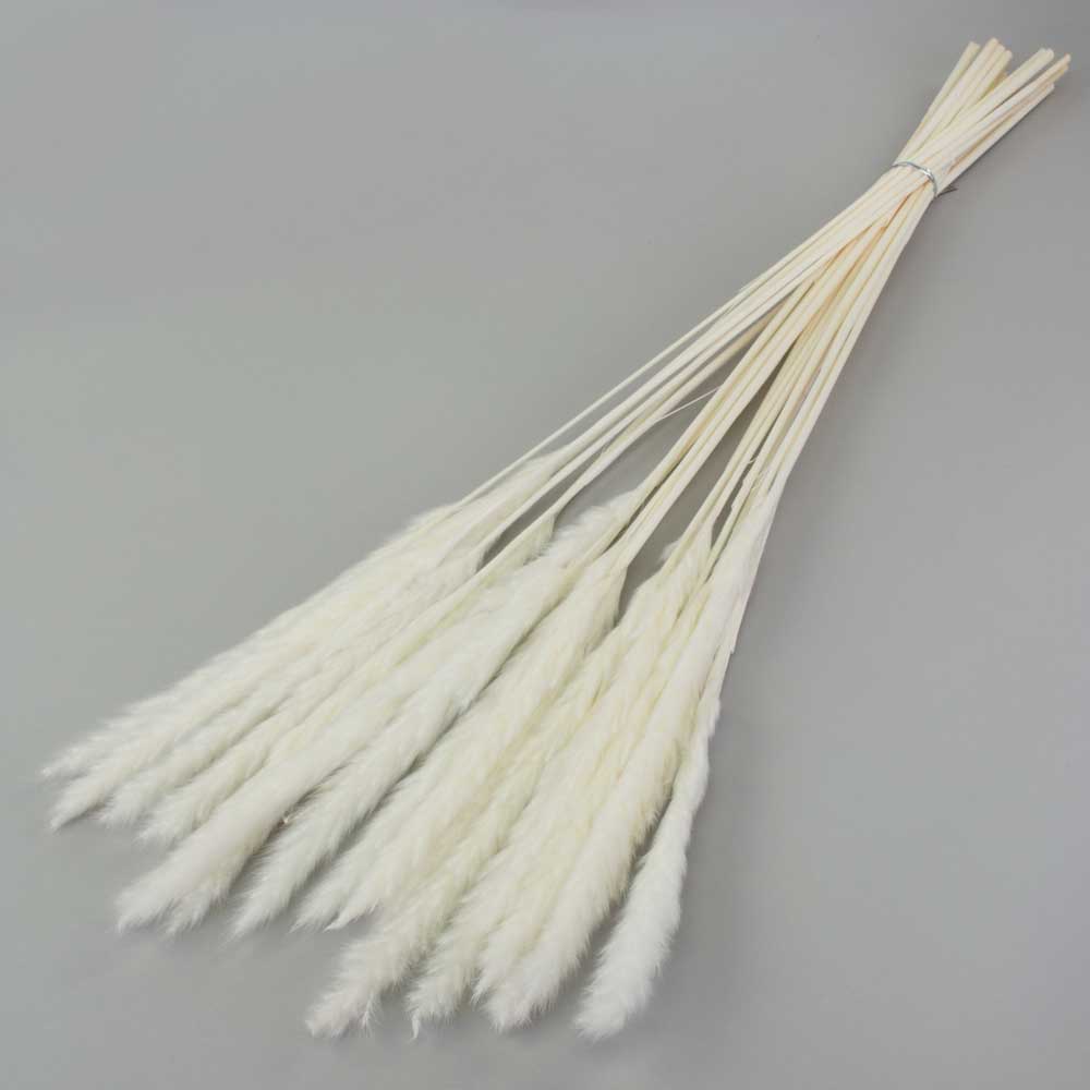 This delicate, fluffy reed has been bleached to a very light white colour, making it a fantastic option when a quite pure white is needed.