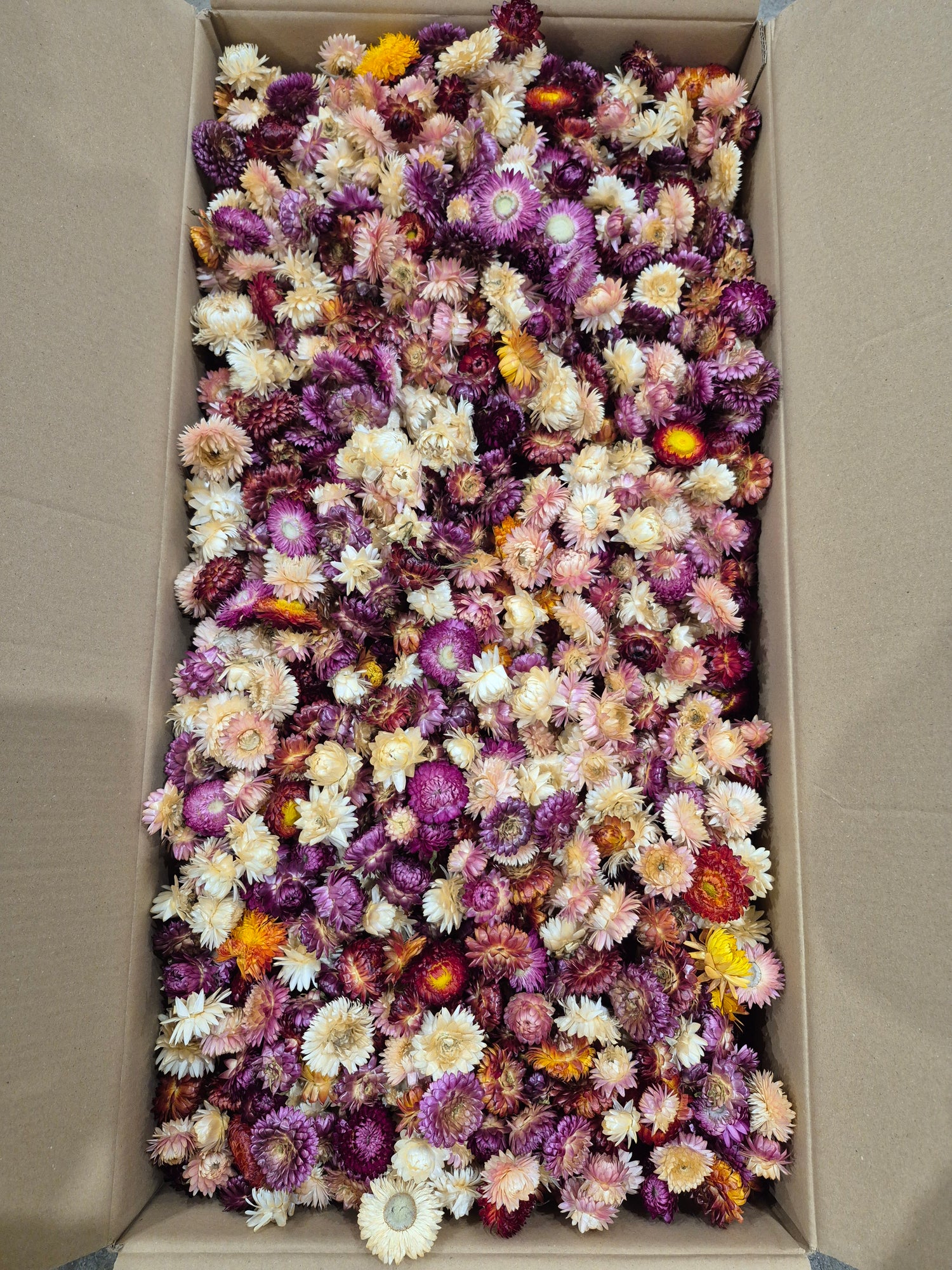 Dried Strawflower, (Helichrysum Heads), Natural, Mix Colours 3KG Box