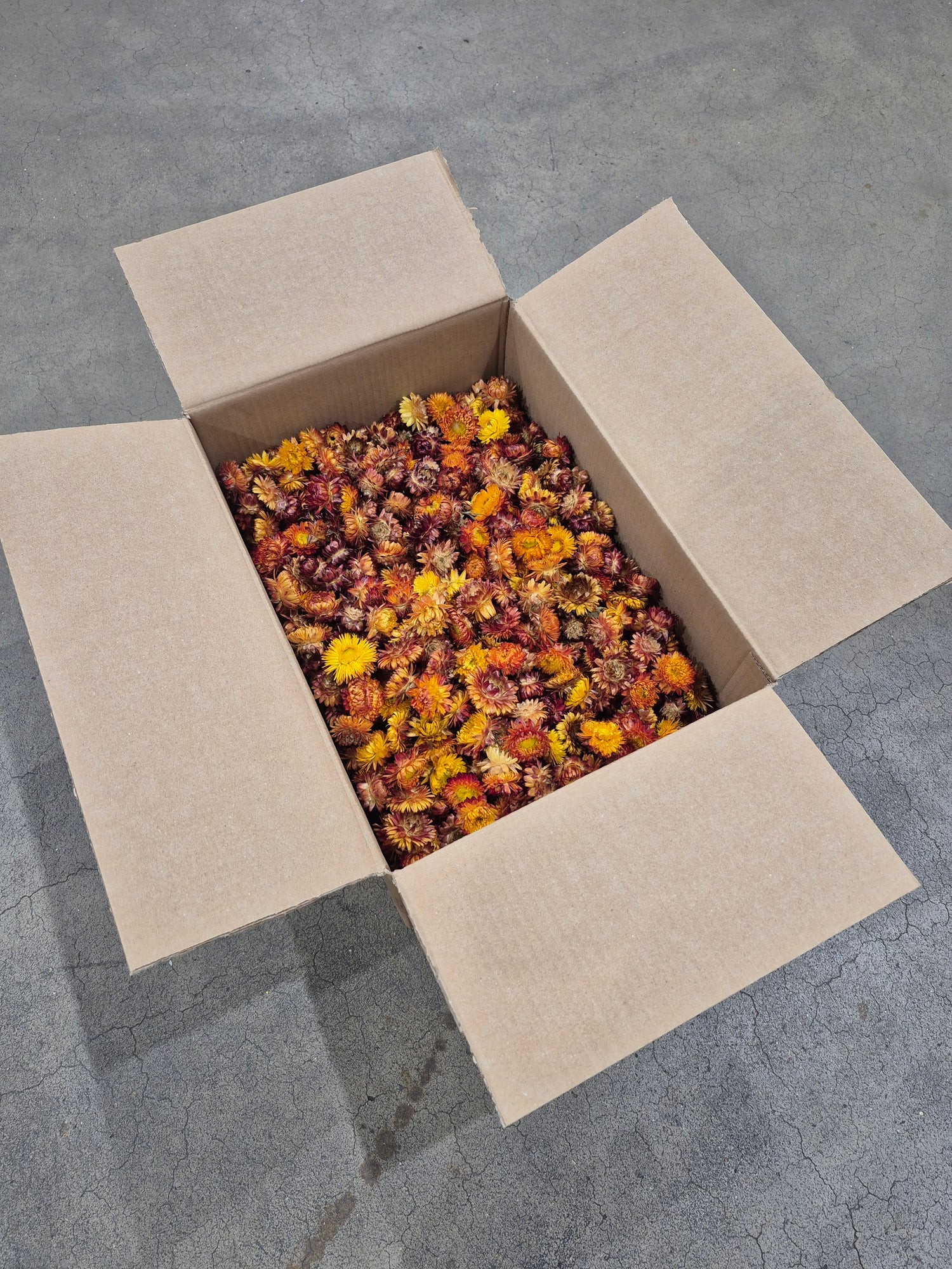 Dried Strawflower, (Helichrysum Heads), Natural, Orange, 1KG Box